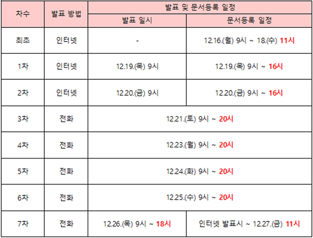 ◈ 정시모집 합격자 발표일 및 충원합격자 발표일 안내