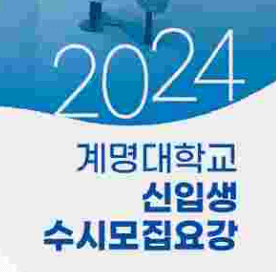2024학년도 계명대 수시 모집요강의 주요 목차를 소개해드리겠습니다. 전형요약 및 주요 변경사항, 모집단위 및 입학정원, 원서접수 및 전형일정 안내, 세부전형별 안내(학생부교과, 학생부종합, 실기/실적전형), 학생부 성적반영방법, 전형료 및 지원자 유의사항, 대학생활 안내 등의 내용이 수록되어 있습니다. 자세한 모집요강의 내용은 아래 내용을 클릭하시면 확인해 보실 수 있습니다.