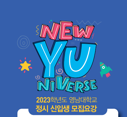 2023학년도 영남대학교 대학입학전형 시행계획 주요 사항을 안내해 드리겠습니다. 본 전형계획은 입학전형에 지원하고자 하는 수험생의 이해를 돕기 위하여 만든 계획이며, 대학의 정원 조정 및 전형관리위원회의 결정에 따라 추후 변경될 수 있습니다. 수시 및 정시모집에 대한 최종내용은 원서접수 전 영남대학교 입학홈페이지 모집요강 및 변경사항 등을 반드시 확인하기 바랍니다. 2024학년도 모집요강은 추후 업데이트될 예정입니다. 아래 "첨부파일"을 클릭하시면 좀 더 자세한 내용을 확인해 볼 수 있습니다.