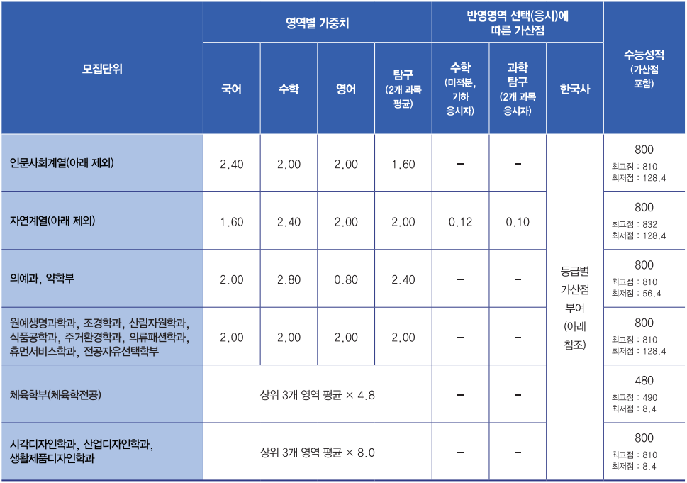 ● 수능성적 반영방법