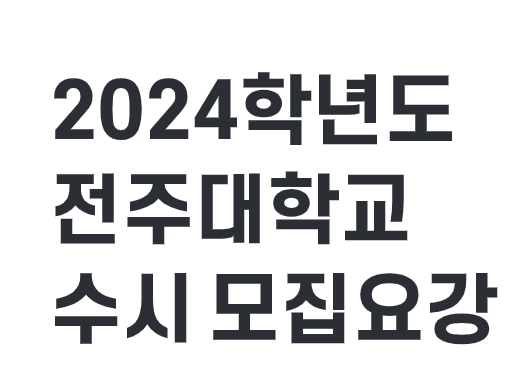 2024학년도 전주대 수시 모집요강의 주요 목차를 소개해드리겠습니다. 지원자 유의사항, 2024학년도 신입학 주요 사항, 모집단위 및 모집인원, 전형일정, 전형안내(전형별 전형요소 반영비율, 학생부종합전형, 학생부교과전형, 실기/실적전형), 합격자 선발원칙(기준), 합격자 발표 및 등록, 환불, 원서접수, 전형료, 대학안내 등의 내용이 수록되어 있습니다. 자세한 모집요강의 내용은 아래 내용을 클릭하시면 확인해 보실 수 있습니다.