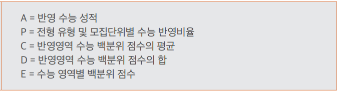 * 탐구영역의 경우 2과목의 백분위 점수를 평균하여 반영하며, 1과목만 있는 경우는 반영하지 않습니다.