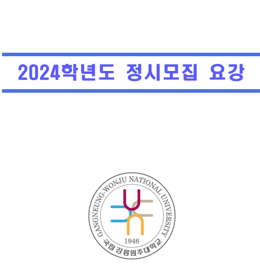 2024학년도 강릉원주대 정시모집요강에 대해서 안내해 드리겠습니다. 주요 목차는 다음과 같습니다. 2024학년도 정시모집 주요 사항, 전형일정, 모집단위(학과) 별 모집인원, 지원자격 및 제출서류, 전형방법, 전형원칙, 대학입학전형 이의신청 처리절차, 원서접수 및 전형료, 지원자 유의사항, 합격자 발표 및 등록안내, 공통서식, 대학안내(등록금 및 장학제도, 학사제도, 학생생활관, 국제화 프로그램 등) 등의 내용이 수록되어 있습니다. 자세한 모집요강의 내용은 아래 내용을 클릭하시면 확인해 보실 수 있습니다.