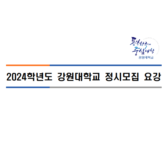 2024학년도 대학수학능력시험일이 얼마 남지 않았습니다. 지난 1년여간 수험생활을 하면서 정신적, 육체적으로 많은 스트레스가 쌓였으리라 생각됩니다. 고 3 및 N수생 여러분들께서 조금만 더 집중하고 노력하셔서 좋은 성적을 거두셨으면 좋겠습니다. 오늘은 강원대학교 정시모집에 대한 정보를 가지고 왔습니다. 정시모집 실시간 경쟁률 확인, 정시모집 충원합격자발표, 정시모집 합격자발표, 입시결과, 원서접수일 및 서류제출, 모집요강, 경쟁률, 수능 성적산출, 입시상담 Q&A, 공통원서 접수방법 등에 대해서 알아보도록 하겠습니다. 수험생 및 학부모님들께서 참고하시면 많은 도움이 되시리라 생각됩니다.