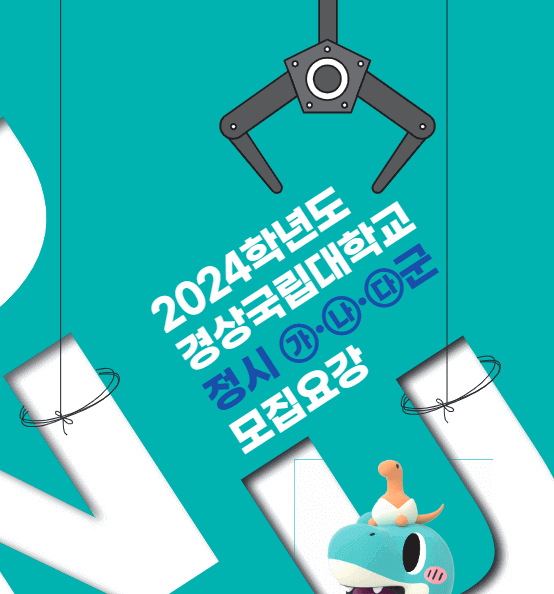 | 원서접수 | 2024.1.3.(수) 오전 9시 ~ 1.6.(토) 오후 7시까지(4일간) * 인터넷 원서접수 * 경상국립대학교 홈페이지( https://www.gnu.jnu.ac.kr ) * 인터넷 원서접수 대행기관 진학어플라이( https://www.jinhakapply.com ) |