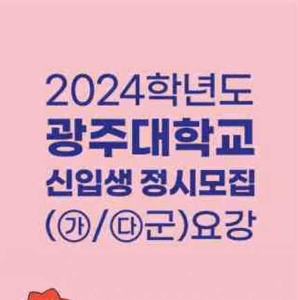 2024학년도 광주대 정시모집요강에 대해서 안내해 드리겠습니다. 주요 목차는 다음과 같습니다. 전형요약 및 주요 변경사항, 모집단위(학과)별 입학정원 및 전형별 모집인원, 원서접수 및 전형일정, 합격자(충원합격자) 발표 및 등록(미등록 충원) 안내, 세부 전형별 안내, 대학수학능력시험 성적 반영방법, 지원자 유의사항, 등록포기, 입학취소에 관한 안내, 전형료, 장학금, 광주대학교 강점 등의 내용이 수록되어 있습니다. 자세한 모집요강의 내용은 아래 내용을 클릭하시면 확인해 보실 수 있습니다.