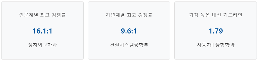 - 한국어문학부 글로벌한국어전공: 9.0:1 (평균 등급 2.5)