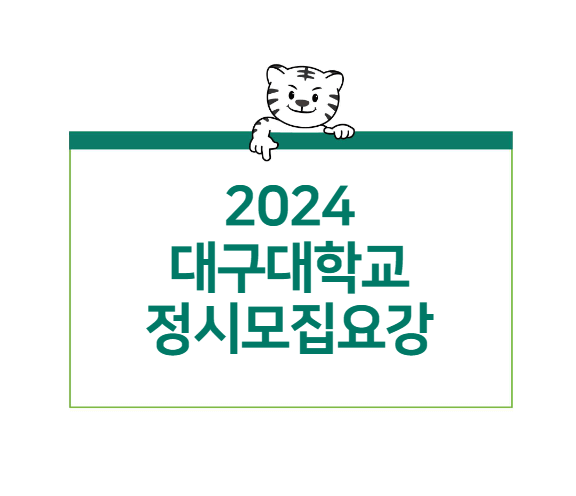 2024학년도 대구대 정시모집요강에 대해서 안내해 드리겠습니다. 주요 목차는 다음과 같습니다. 전형요약 및 주요 사항, 전형별 모집단위(학과) 별 모집인원, 전형일정 및 원서접수, 세부 전형 안내(가/나/다군 수능 일반전형, 나/다군 실기/실적 예체능실기전형, 가/나/다군 농어촌학생 특별전형, 가/나/다군 수능 기초생활수급자/차상위계층/한부모가족 특별전형, 가/나/다군 수능 특성화고교 졸업자 특별전형, 다군 학생부종합 평생학습자전형, 다군 학생부종합 특성화고 등을 졸업한 재직자 특별전형), 전형별 공통사항, 지원자 유의사항, 등록 및 등록 포기/환불 안내, 전형료 및 전형료 면제/환불안내 등의 내용이 수록되어 있습니다. 자세한 모집요강의 내용은 아래 내용을 클릭하시면 확인해 보실 수 있습니다.