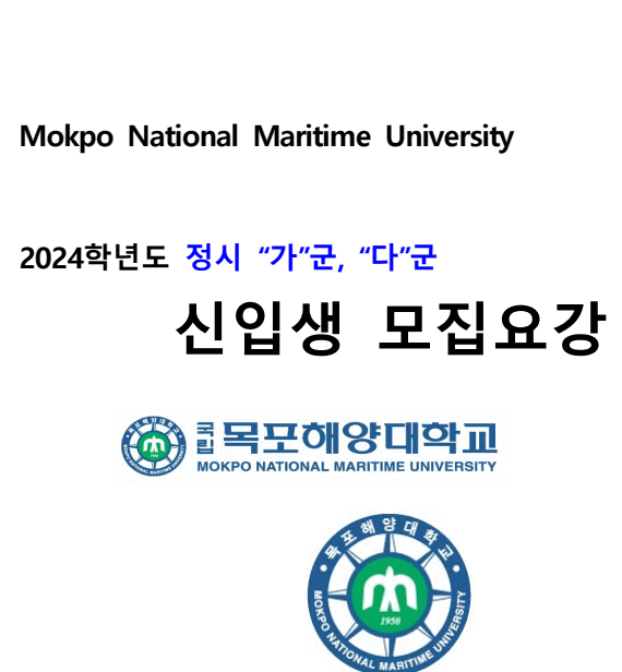 2024학년도 목포해양대 정시모집요강에 대해서 안내해 드리겠습니다. 주요 목차는 다음과 같습니다. 전형일정, 모집단위(학과) 및 전형유형별 모집인원, 전형유형별 지원자격 및 제출서류, 전형요소 및 반영비율, 대학수학능력시험 성적반영, 해양스포츠·레저융합학과 전형방법 및 반영비율, 선발방법, 해사대학 선원건강검진, 피복측정, 등록금 납부, 등록포기 및 등록금 환불신청 등의 내용이 수록되어 있습니다. 자세한 모집요강의 내용은 아래 내용을 클릭하시면 확인해 보실 수 있습니다.