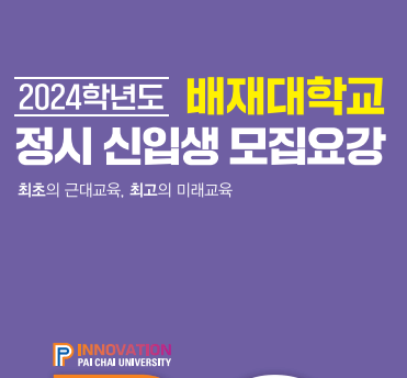 드디어 2024학년도 대학수학능력시험이 끝이 났습니다. 지난 1년여 동안 고 3 및 N수생 여러분들께서 힘든 수험생활을 하시느라 정말 고생 많이 하셨습니다. 그동안 쌓였던 정신적, 육체적 스트레스를 잠시나마 푸시고 다가올 정시모집에 집중하시기 바랍니다. 오늘은 배재대학교 정시모집에 대한 정보를 가지고 왔습니다. 정시모집 실시간 경쟁률 확인, 정시모집 충원합격자발표, 정시모집 합격자발표, 정시모집 입시결과, 원서접수일 및 서류제출, 모집요강, 경쟁률, 학과소개, 입학상담 서비스, 입학상담 Q&A, 공통원서 접수방법 등에 대해서 알아보도록 하겠습니다. 수험생 및 학부모님들께서 참고하시면 많은 도움이 되시리라 생각됩니다.