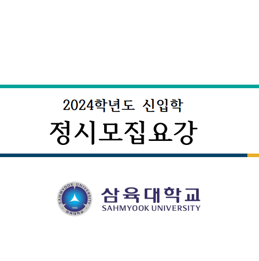 2024학년도 삼육대 정시모집요강에 대해서 안내해 드리겠습니다. 주요 목차는 다음과 같습니다. 전형요약 및 주요사항(주요 변경사항), 모집단위(학과) 및 모집인원, 원서접수 및 유의사항, 전형별 안내[일반전형, 신학특별전형, 농어촌전형(정원 외), 기회균형 2 전형(정원 외), 특성화고교전형(정원 외)], 대학수학능력시험 반영방법, 실기고사, 합격자 발표, 등록금 환불, 대학생활 안내 등의 내용이 수록되어 있습니다. 자세한 모집요강의 내용은 아래 내용을 클릭하시면 확인해 보실 수 있습니다.