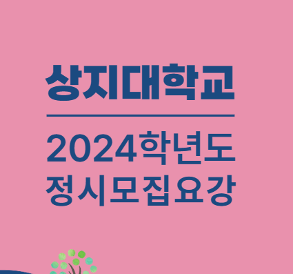 2024학년도 상지대 정시모집요강에 대해서 안내해 드리겠습니다. 주요 목차는 다음과 같습니다. 전형 요약 및 주요 사항, 전형별 모집인원, 원서접수, 전형료 및 전형일정 안내, 합격자 발표 및 등록 일정, 전형별 세부사항[서류 제출 관련사항, 수능일반, 수능강원인재, 수능강원인재균형, 실기일반, 농어촌학생(정원 외), 특성화고교(정원 외), 교육기회균등(정원 외), 장애인 등 대상자(정원 외), 만학도(정원 외), 군위탁특별전형(정원 외)], 대학수학능력시험 반영방법, 학교생활기록부 반영방법, 실기고사, 합격자 선발기준, 지원자 및 합격자 유의사항, 개인정보 수집 및 이용 안내, 서식자료 및 기타 사항, 대학 안내 등의 내용이 수록되어 있습니다. 자세한 모집요강의 내용은 아래 내용을 클릭하시면 확인해 보실 수 있습니다.