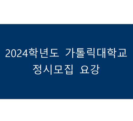 2024학년도 대학수학능력시험일이 얼마 남지 않았습니다. 지난 1년여간 수험생활을 하면서 정신적, 육체적으로 많은 스트레스가 쌓였으리라 생각됩니다. 고 3 및 N수생 여러분들께서 조금만 더 집중하고 노력하셔서 좋은 성적을 거두셨으면 좋겠습니다. 오늘은 가톨릭대학교 정시모집에 대한 정보를 가지고 왔습니다. 정시모집 실시간 경쟁률 확인, 정시모집 충원합격자발표, 정시모집 합격자발표, 입시결과, 원서접수일 및 서류제출, 모집요강, 경쟁률, 입학상담 Q&A, 제출서류, 공통원서 접수방법 등에 대해서 알아보도록 하겠습니다. 수험생 및 학부모님들께서 참고하시면 많은 도움이 되시리라 생각됩니다.