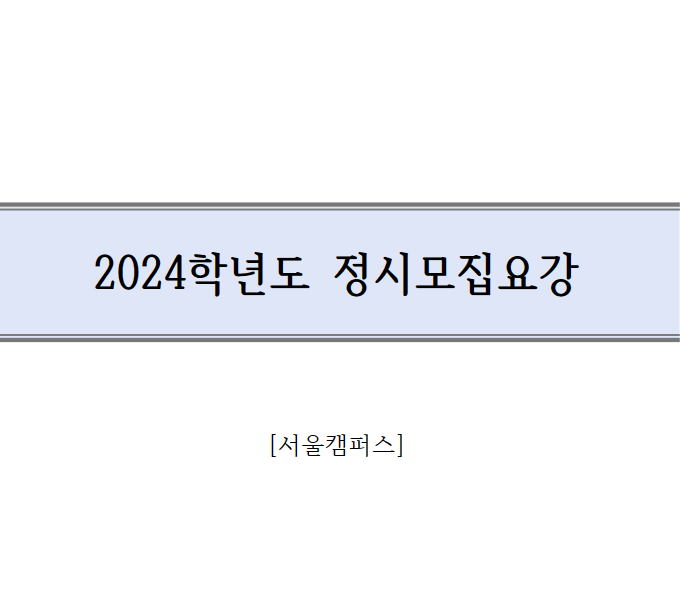 | 서류제출 | 2024.1.3.(수) 오전 10시 ~ 1.8.(월) 오후 5시까지 << 온라인 제출>> * 제출 서류 원본을 스캔하여 1개의 PDF파일로 저장하고 원서접수 사이트에 업로드하여 제출 * 우편 및 방문제출 불가 * 제출서류 미제출자에게 개별적으로 연락하지 않으므로 반드시 본인이 확인 * 최종등록자는 2024년 2월 29일(목)까지 제출서류 원본을 서울캠퍼스 입학팀으로 제출 * 국가안보학과 제출서류 공무원채용신체검사서는 체력검정 대기실에서 직접 제출 * 서류제출 해당자 |