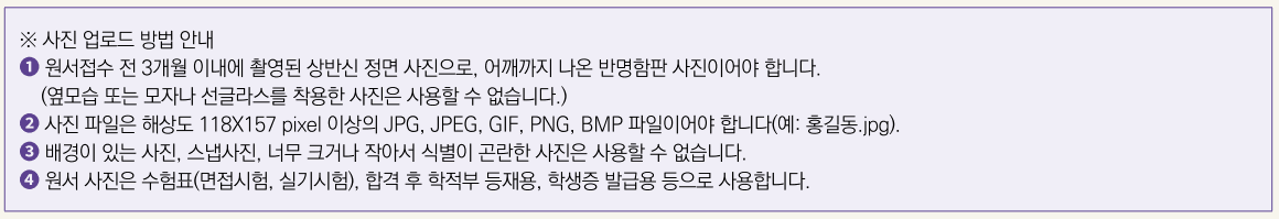 원서접수가 완료된 후에는 원서접수 취소, 모집단위 변경, 전형 및 지원자격 변경 등은 일절 불가합니다.