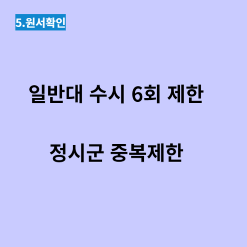 일반대 원서접수는 수시 6회, 정시군 중복 제한 등 지원 횟수에 제한이 있기 때문에 더욱 신중하게 결제를 하셔야 합니다.