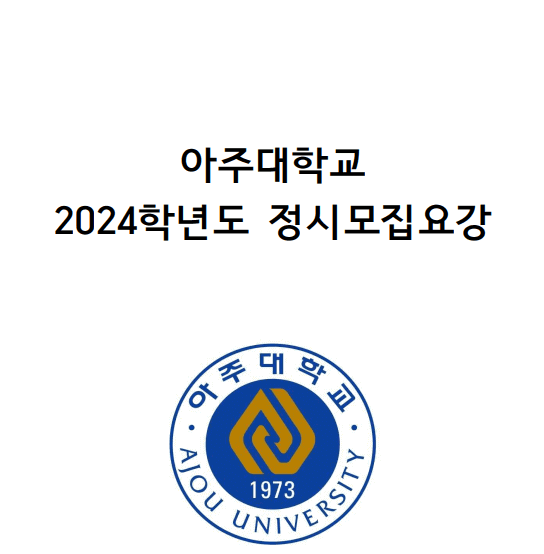 | 원서접수 | 2024.1.3.(수) 오전 9시 ~ 1.6.(토) 오후 6시까지 * 인터넷 원서접수 * 아주대학교 입학처 홈페이지( https://www.iajou.ac.kr ) * 인터넷 원서접수 대행기관 진학어플라이( https://www.jinhakapply.com ) |