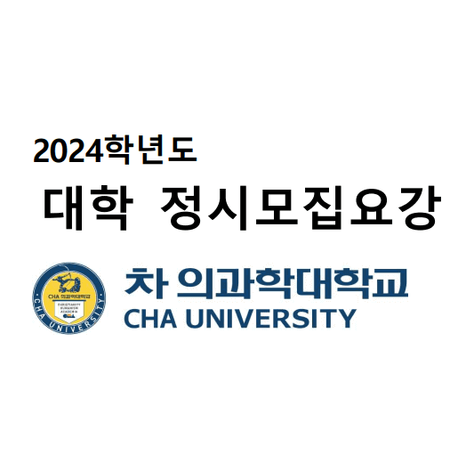 | 원서접수 | 2024.1.3.(수) 오전 9시 ~ 1.6.(토) 오후 6시까지 * 인터넷 원서접수만 실시 * 차의과학대학교 입학 홈페이지( https://admission.cha.ac.kr ) * 인터넷 원서접수 대행기관 진학어플라이( https://www.jinhakapply.com ) |