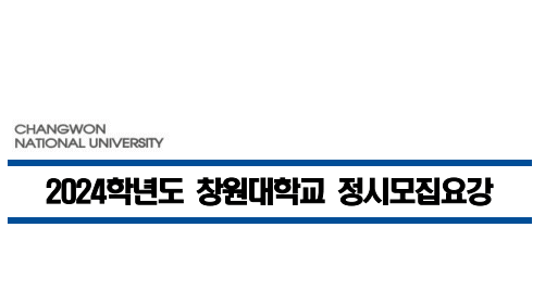 | 원서접수 | 2024.1.3.(수) ~ 1.6.(토) 오후 6시까지 * 인터넷접수만 가능 * 창원대학교 입학 홈페이지( http://ipsi.changwon.ac.kr ) * 창원대학교 홈페이지( http://www.changwon.ac.kr ) |