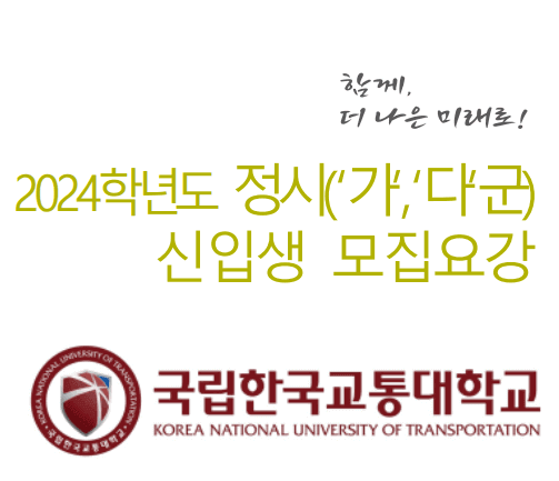 2024학년도 대학수학능력시험일이 얼마 남지 않았습니다. 지난 1년여간 수험생활을 하면서 정신적, 육체적으로 많은 스트레스가 쌓였으리라 생각됩니다. 고 3 및 N수생 여러분들께서 조금만 더 집중하고 노력하셔서 좋은 성적을 거두셨으면 좋겠습니다. 오늘은 한국교통대학교 정시모집에 대한 정보를 가지고 왔습니다. 정시모집 실시간 경쟁률 확인, 정시모집 충원합격자발표, 정시모집 합격자발표, 입시결과, 원서접수일 및 서류제출, 모집요강, 경쟁률, 대학수학능력시험 성적산출, 입학상담 Q&A, 서식모음, 공통원서 접수방법 등에 대해서 알아보도록 하겠습니다. 수험생 및 학부모님들께서 참고하시면 많은 도움이 되시리라 생각됩니다.