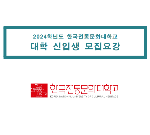 | 원서접수 | 2024.1.2.(화) 오전 9시 ~ 1.9.(화) 오후 6시까지 * 한국전통문화대학교 홈페이지( https://www.nuch.ac.kr ) * 인터넷 원서접수 대행기관 진학어플라이( https://www.jinhakapply.com ), 유웨이어플라이( https://www.uwayapply.com ) |