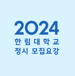 | 원서접수 | 2024.1.3.(수) 오전 9시 ~ 1.6.(토) 오후 8시까지 * 인터넷 원서접수(별도의 원서교부 및 방문접수 없음) * 한림대학교 입학 홈페이지( https://admission.hallym.ac.kr ) * 인터넷 원서접수 대행기관 유웨이어플라이( https://www.uwayapply.com ) |