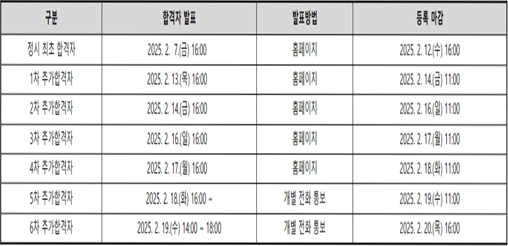 ★ 충원합격자 발표 : 2025. 2. 13.(목) ~ 2. 19.(수) 18:00까지