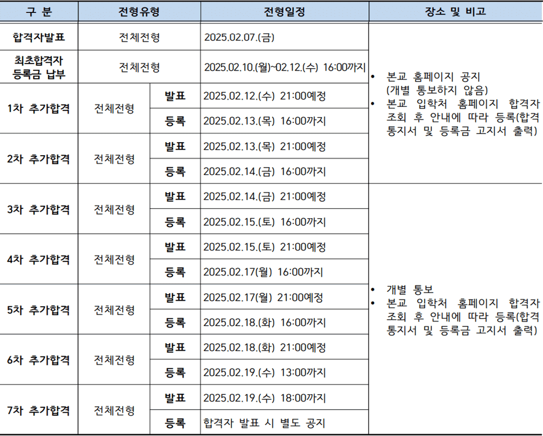 전체전형 | 2025. 02. 10.(월) ~ 02. 12.(수) 16:00까지 |