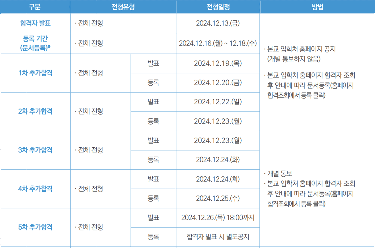 1. 수시모집 합격자 발표일 : 2024.12.13.(금) (전체 전형)