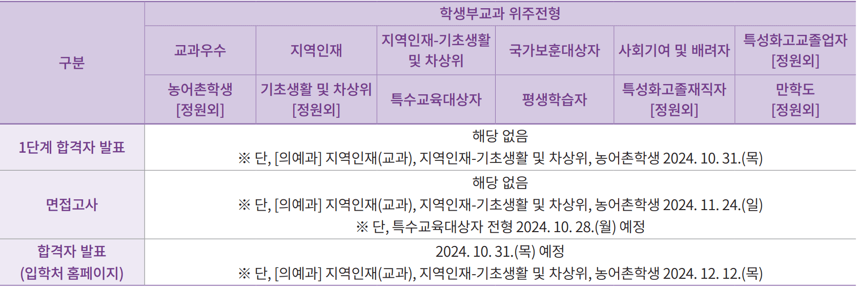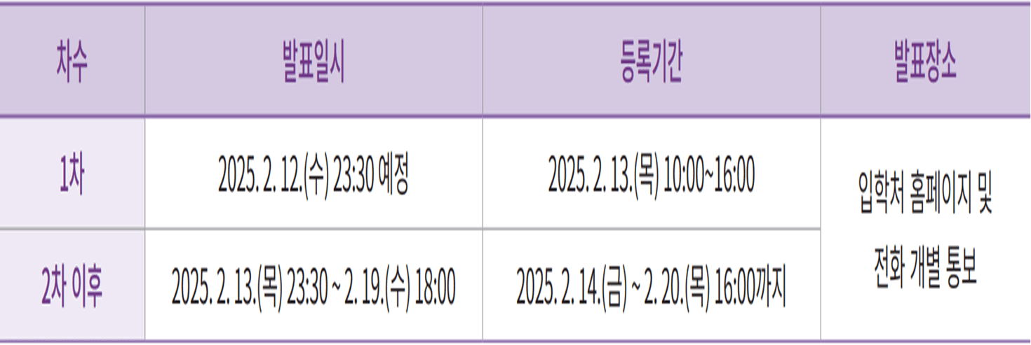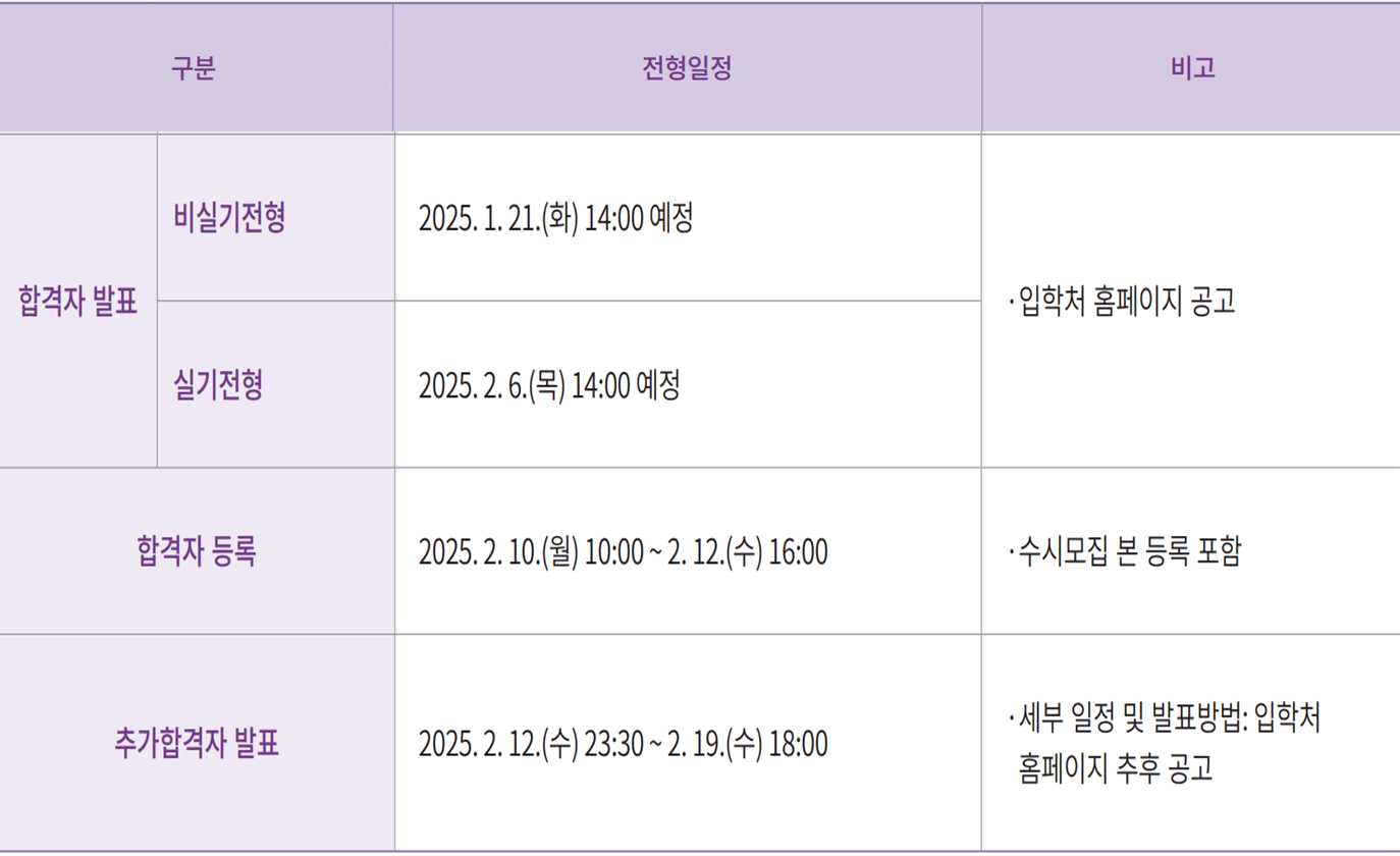 ※ 일정은 변경될 수 있으므로 최종 확정된 일정을 입학처 홈페이지에서 확인 요망