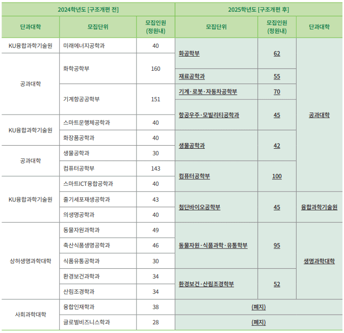 ※ KU자유전공학부(무전공) 선택 불가 모집단위(하과)