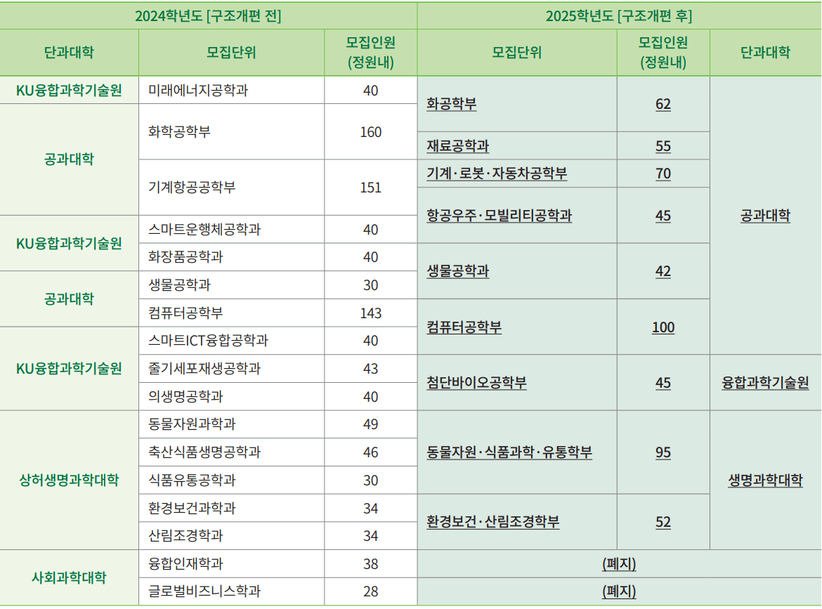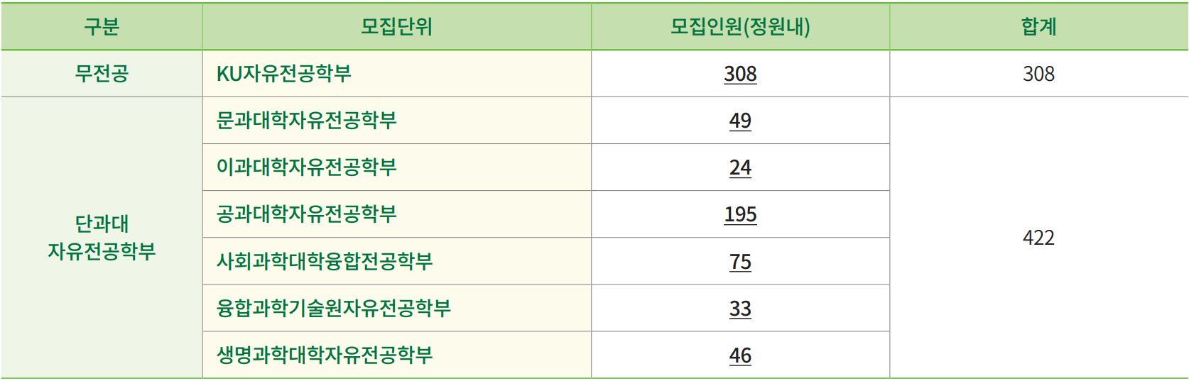 * KU자유전공학부(무전공) 선택 불가 모집단위
