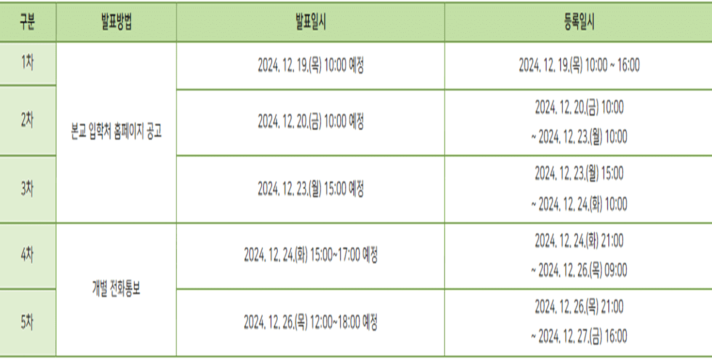 ※ 4~5차 추가합격자 발표는 전화로 개별 통보하며 전화를 받지 않을 경우 그 다음 순위자에게 합격을 통보함.