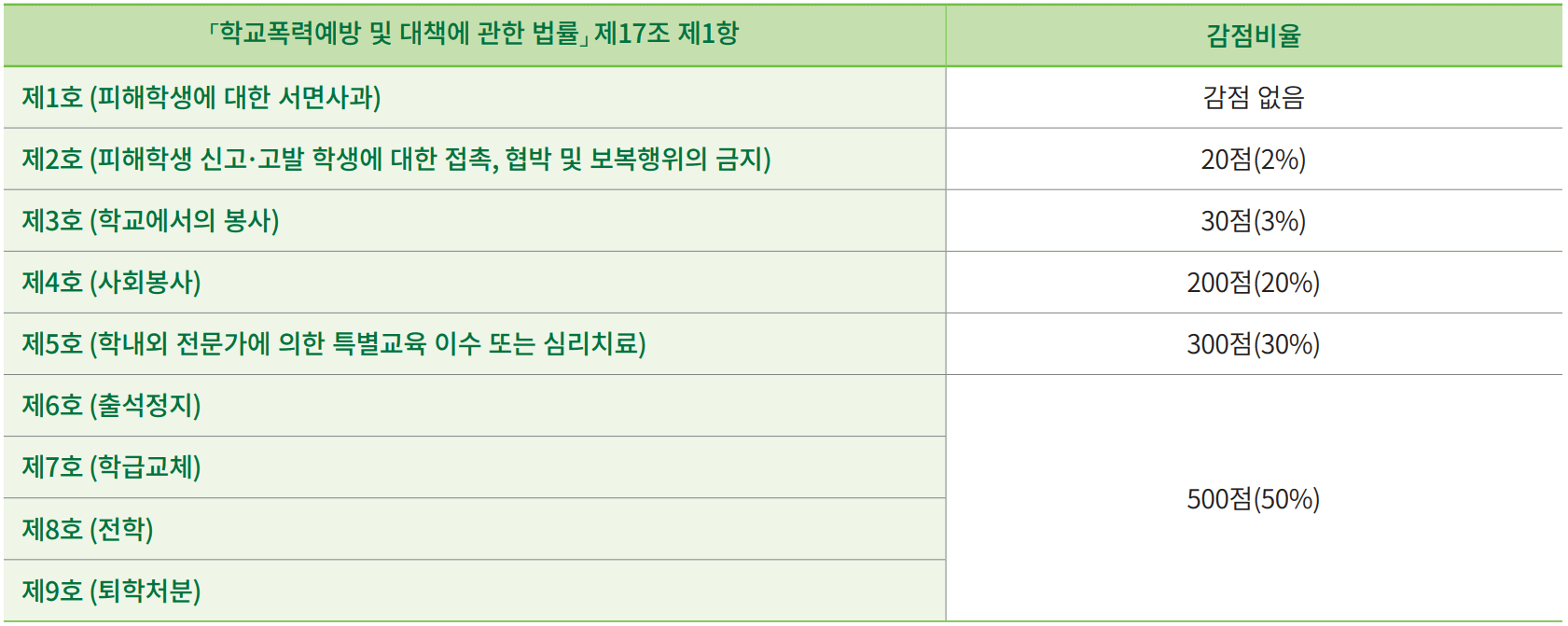 * 모든 전형에 학교폭력 조치사항 감점표 적용