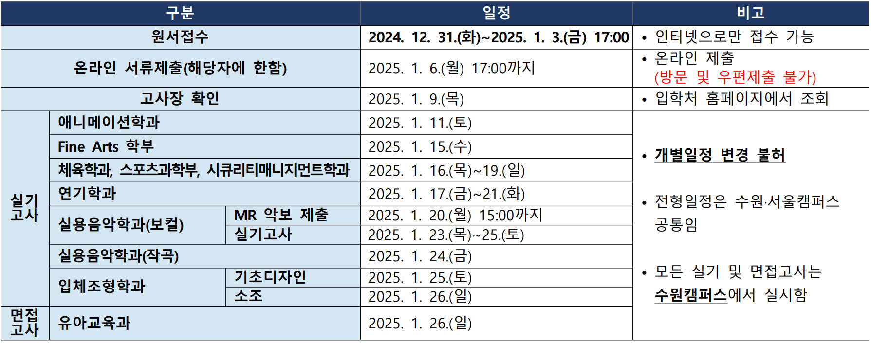 2025학년도 아주대 수시모집 합격자 발표 및 충원(추가) 합격자 발표 정시모집 원서접수일 및 서