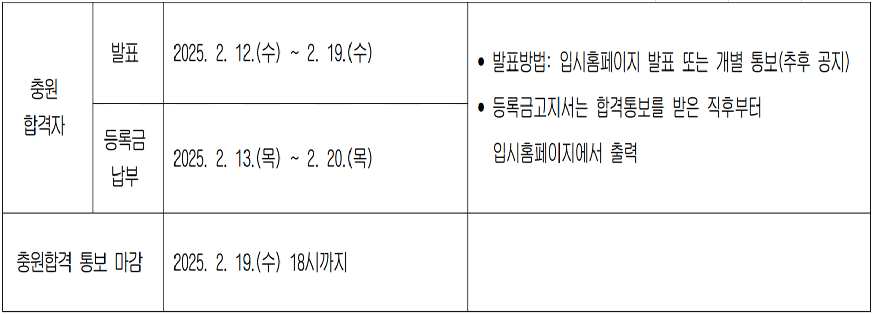 ★ 충원합격자 발표 : 2025. 2. 12.(수) ~ 2025. 2. 19.(수)