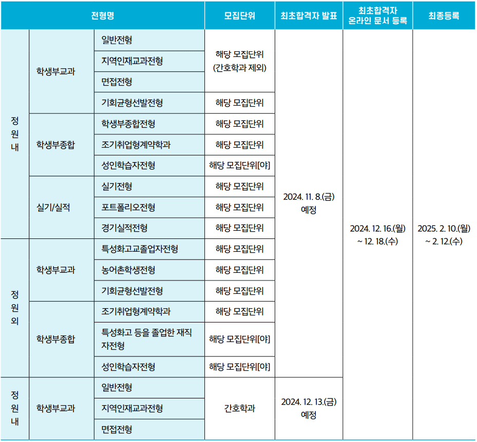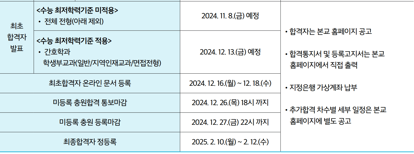 - 2024.11.01.(금) 14시 : <수능 최저학력기준 미적용> 전체 전형