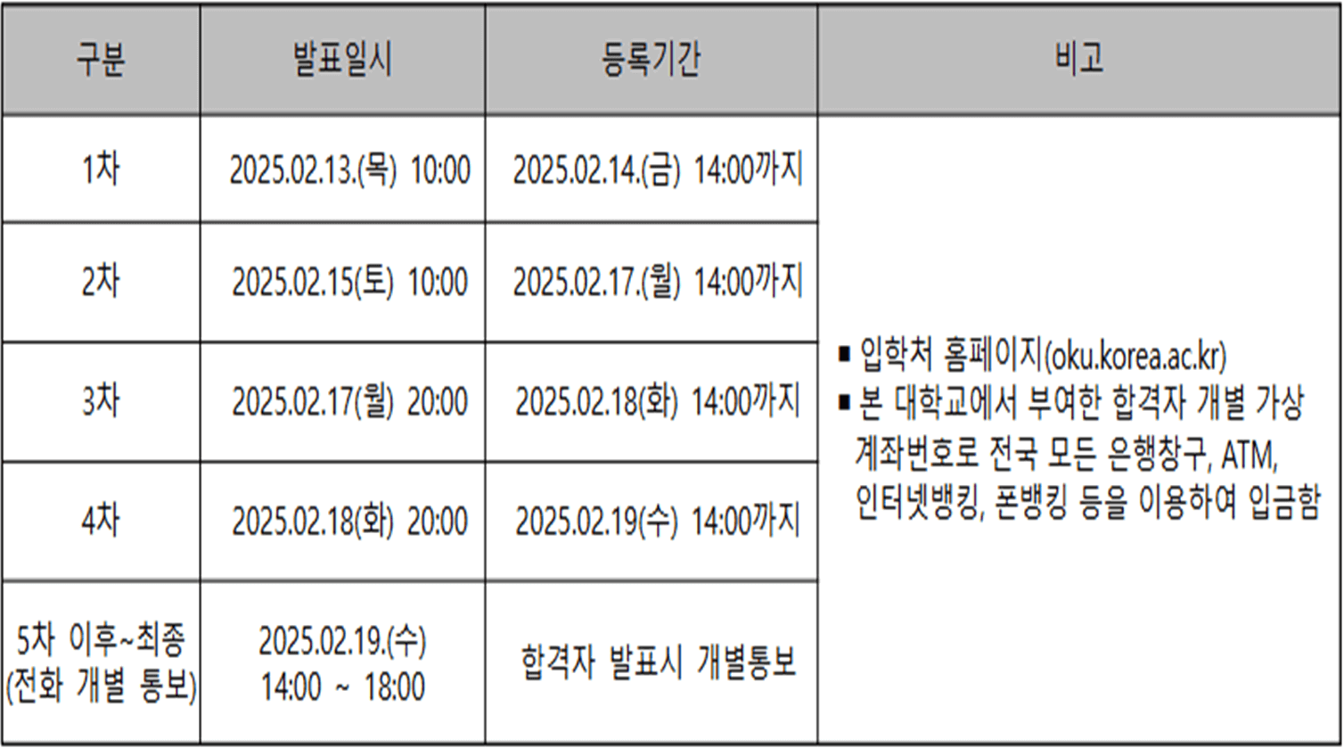- 5차 이후 ~ 최종 : 2025. 2. 19.(수) 14:00 ~ 18:00 (전화 개별 통보)
