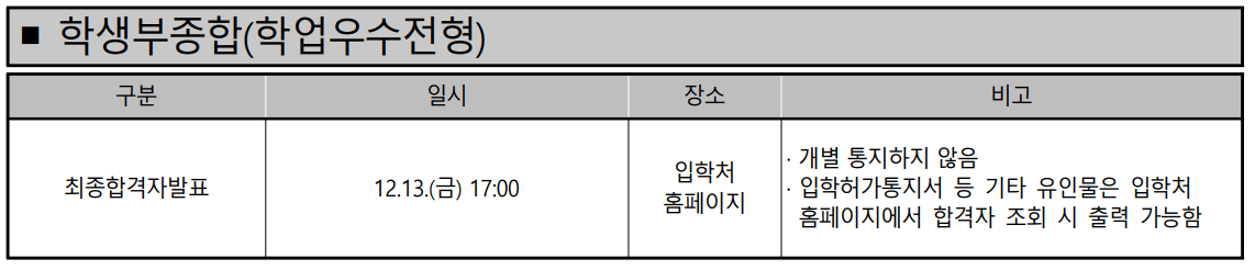 ◈ 정시모집 합격자 발표일 및 충원합격자 발표일 안내