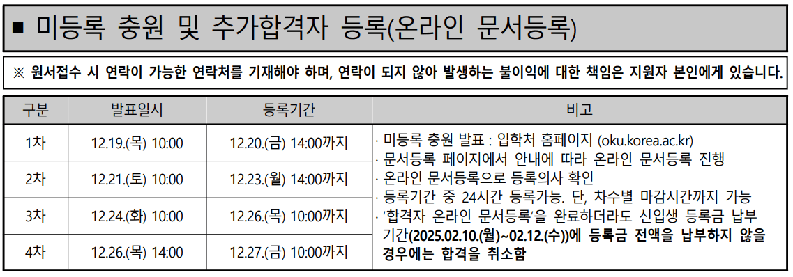 ● 추가합격자 발표 및 등록