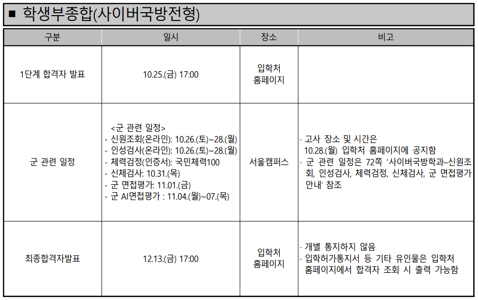 | 장소 | 입학처 홈페이지(oku.korea.ac.kr) |