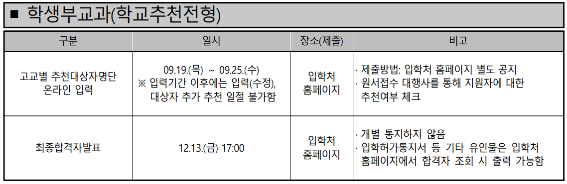 : 일반전형, 교과우수전형, 농어촌전형