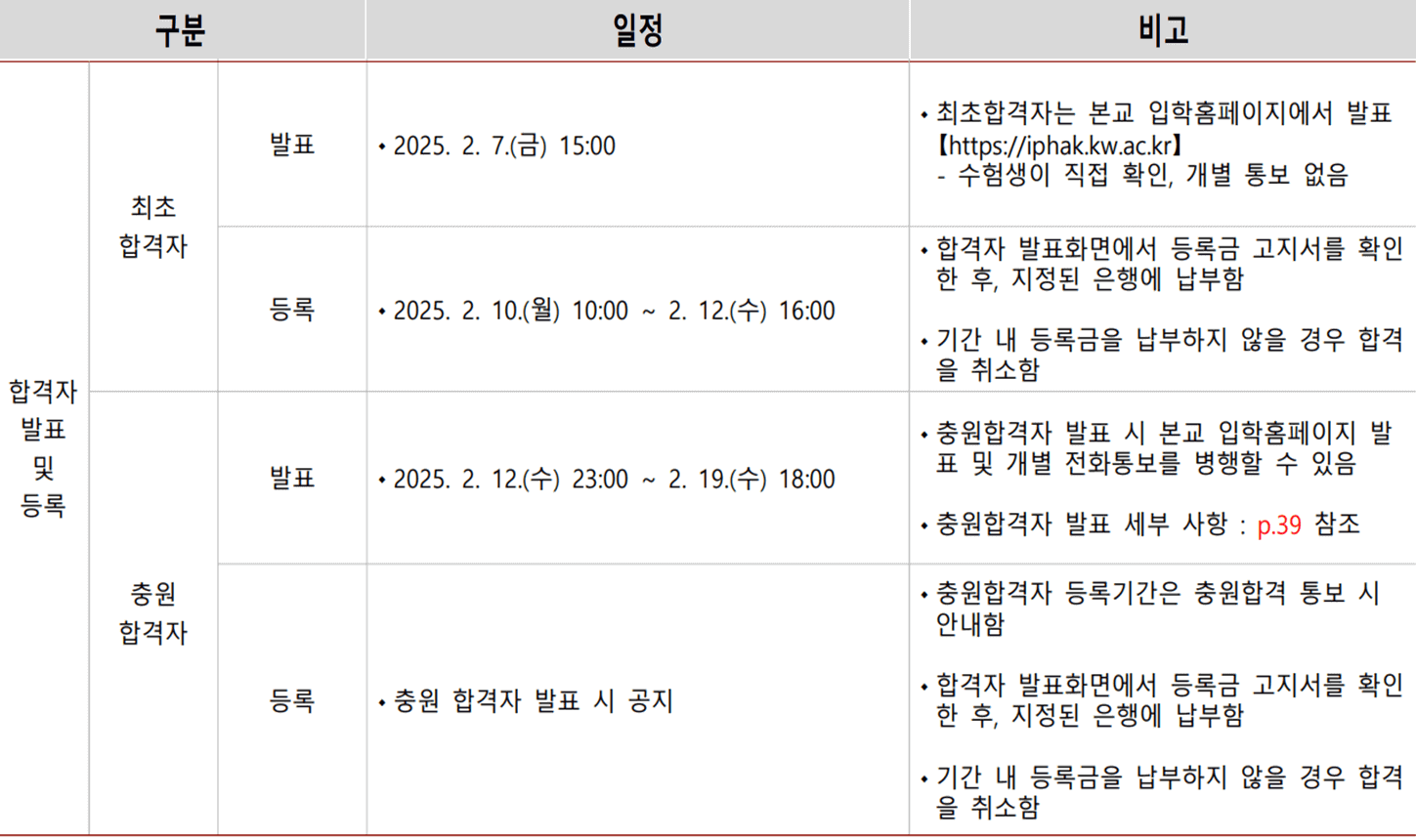2025학년도 광운대 정시모집 합격자 발표일 및 추가 합격자 발표일에 대해사 안내해 드리도록 하겠습니다.
