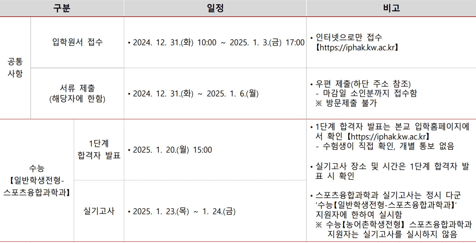 | 광운대 입학홈페이지 | http://iphak.kw.ac.kr |