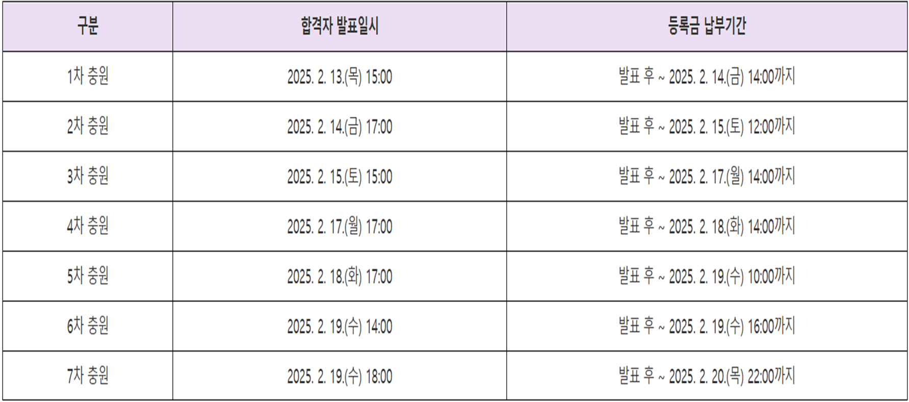 - 7차 충원 : 2025. 2. 19.(수) 18:00