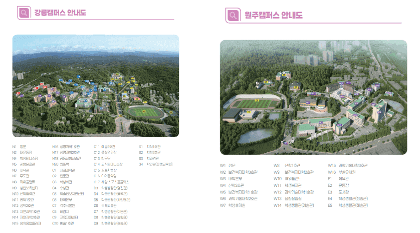 2025학년도 국립강릉원주대 정시모집 지원을 희망하는 수험생분들을 위해 학과에 대한 소개를 안내해 드리겠습니다. 학과(부)소개, 교육목표, 교수진, 연구내용, 교육과정, 졸업요건, 관련 자격증, 동아리, 커뮤니티 등 각 학과의 특·장점들의 내용이 수록되어 있습니다. 천천히 읽어보시고 지원 시 도움이 되시기 바랍니다.