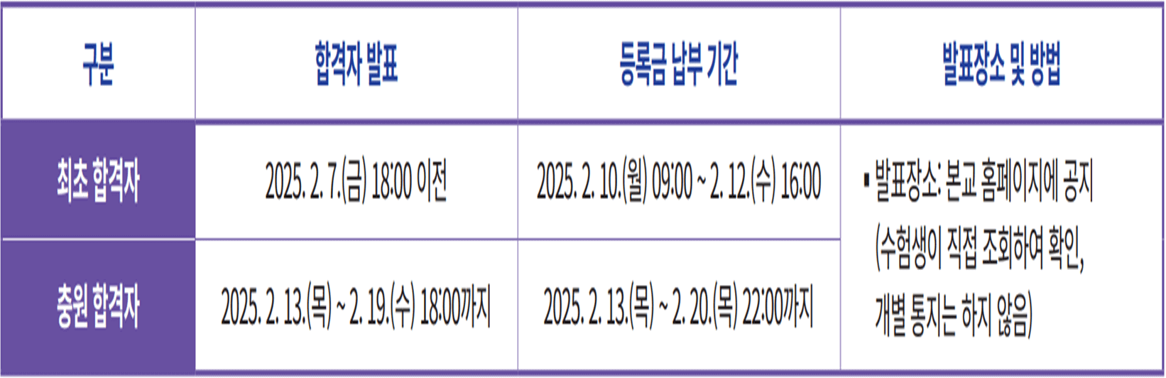 ★ 충원 합격자 발표 : 2025. 2. 13.(목) ~ 2. 19.(수) 18:00 까지