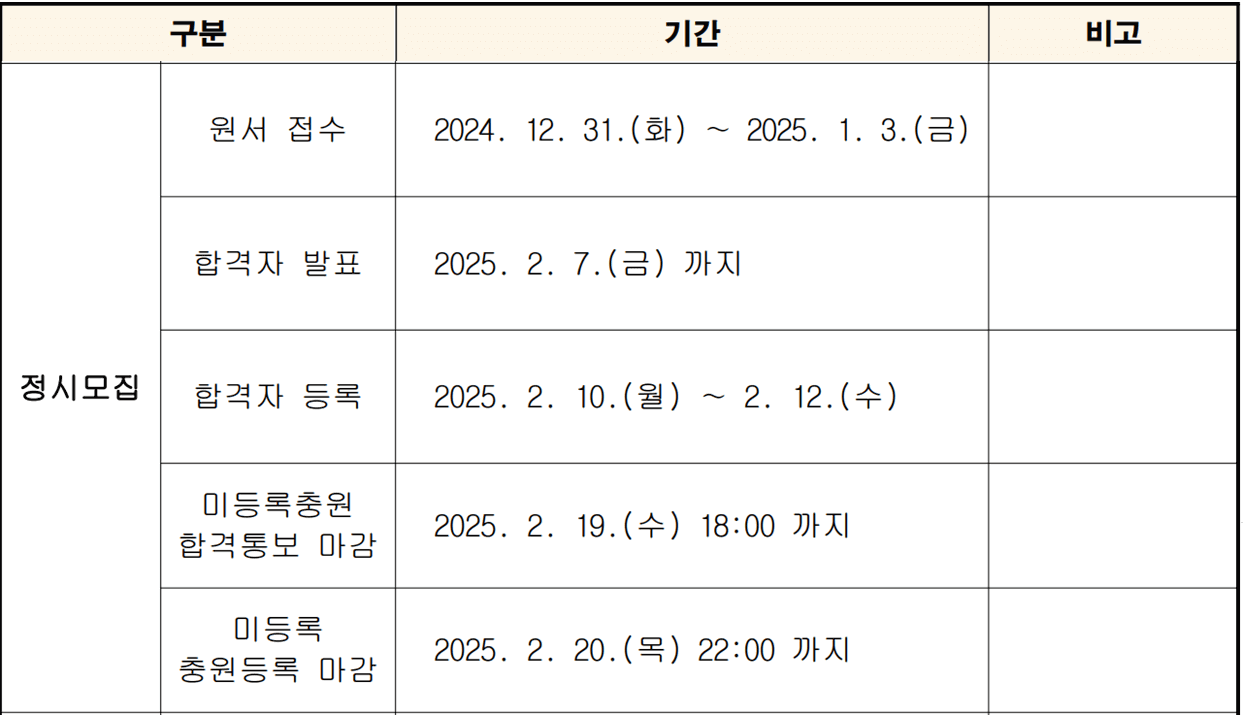 ◈ 정시모집 합격자 발표일 및 충원합격자 발표일 안내
