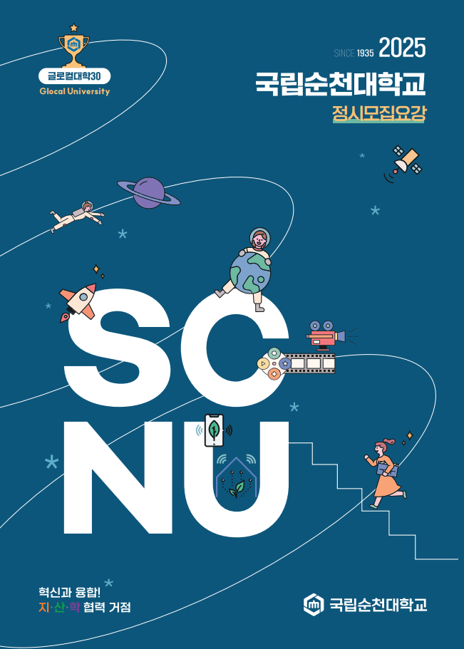 2025학년도 국립순천대 정시모집 지원을 희망하는 수험생분들을 위해 학과에 대한 소개를 안내해 드리겠습니다. 학과소개, 교수진소개, 장학금, 학사일정, 교과과정, 졸업조건, 전공동아리, 취업정보, 입학안내, 실험실소개 등 각 학과의 특·장점들의 내용이 수록되어 있습니다. 천천히 읽어보시고 지원 시 도움이 되시기 바랍니다.