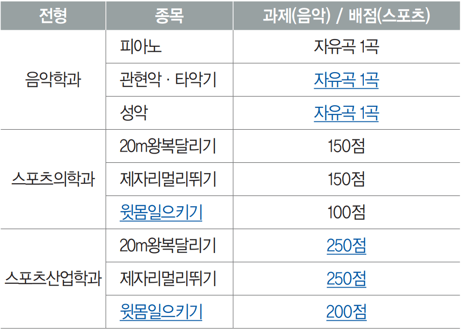 ● 예체능계열 실기종목 및 과제, 배점 변경